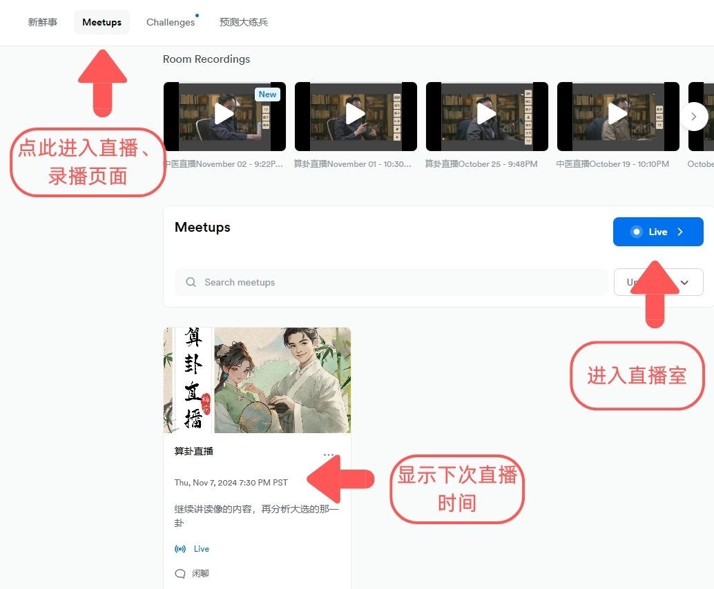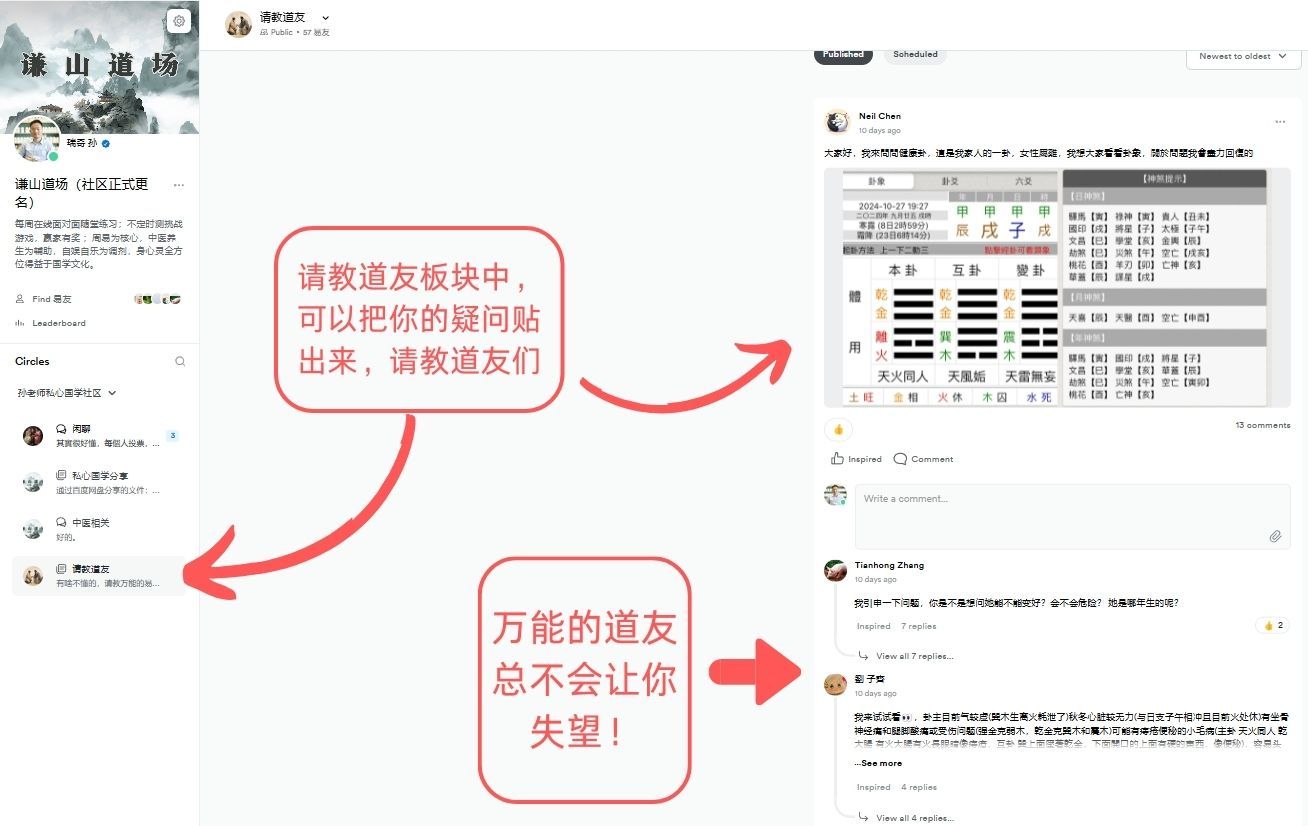 道场每周会固定一次算卦直播,几乎全年无休。会提前通知何时直播,大家要计算好当地时间,尽量参加。因为现场断卦加现场反馈才能让你的算卦技艺更上层楼。