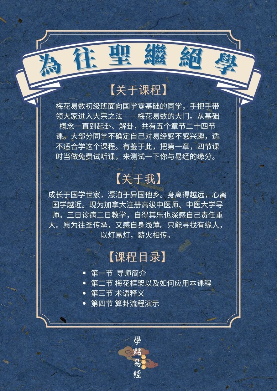梅花易数是最适合小白入门的而且潜力无限的预测术。一千余年的积累让你在姻缘、财运等诸多方面游刃有余。本试听课程可以让你感受一下梅花的魅力所在。